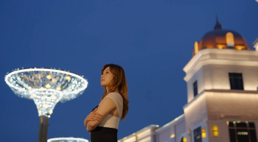 在长三角绿洲智谷·赵巷工作的张茜(留学中国香港)与邓植隆(留学美国)以英语推介园区的高配设施——从健身房、人才公寓到“花园里”商场,打造“白领温暖的家”;曾留学韩国的蒋舒佳,如今是青浦宝龙广场的企划主管,她以韩语分享如何策划泡泡雨市集、华为专属福利等趣味活动,让郊区生活“越来越有时尚感”。